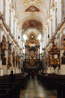 The church stood in its Romanesque/Gothic splendor for the next three centuries, only to have a Renaissance steeple added during the seventeenth century. Shortly after that, a Baroque choir was added at Peterskirche. Just a century or so later, it was completely renovated – this time in an elaborate Rococo style.